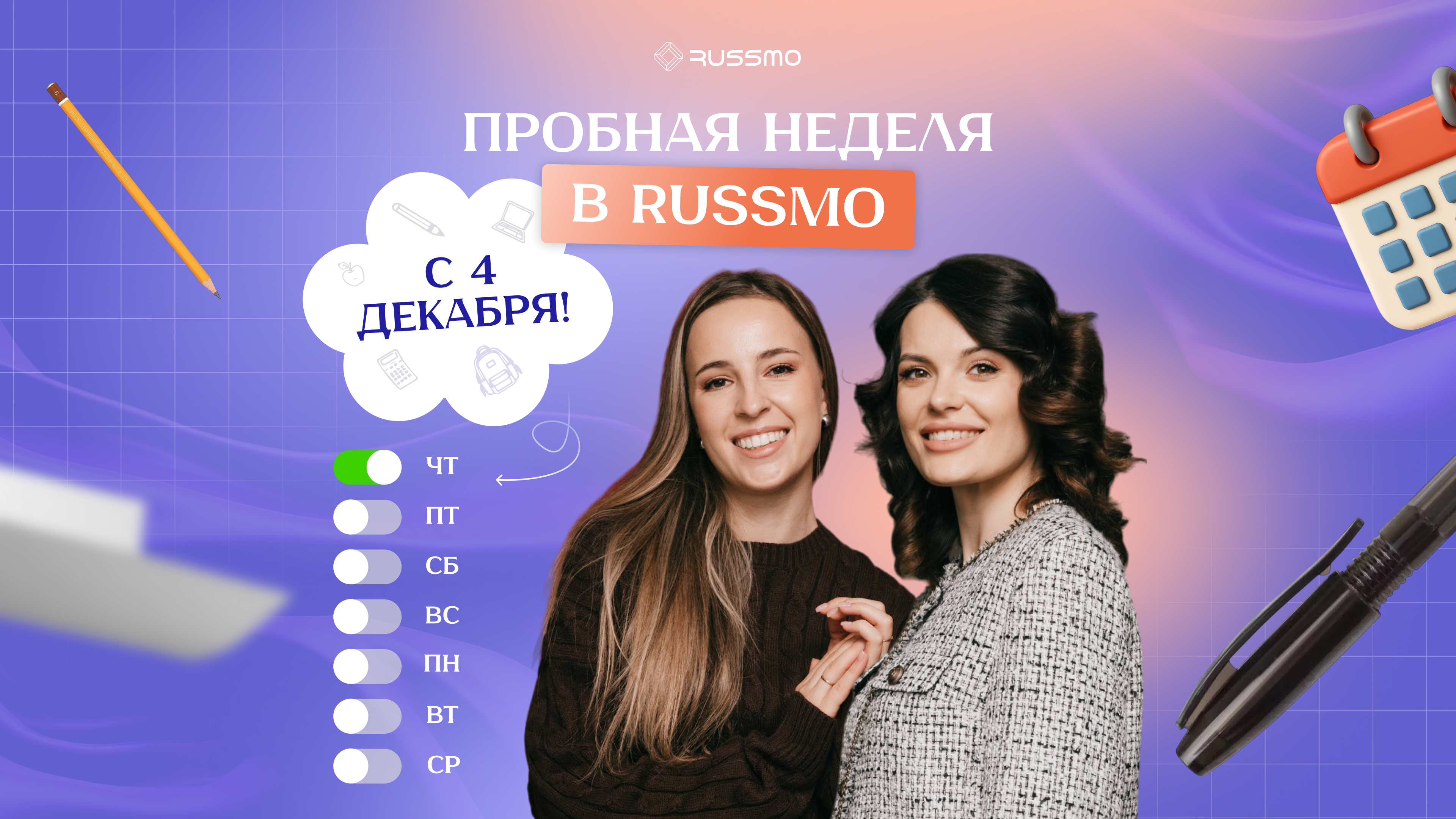 Мы хотим стать твоим проводником в мир подготовки к ЕГЭ и приглашаем тебя на пробную неделю в RUSSMO.